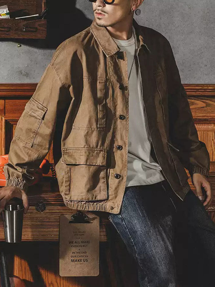 This Men's Classic Workwear Jacket is crafted from premium fabric, combining traditional workwear style with modern design elements for both practicality and fashion. The loose fit ensures comfort for daily wear while enhancing your overall look. The large pockets add functionality, allowing you to conveniently store your essentials, making it ideal for outdoor activities or casual outings. Available in three colors, this jacket easily complements a variety of styles, whether for casual or work settings.